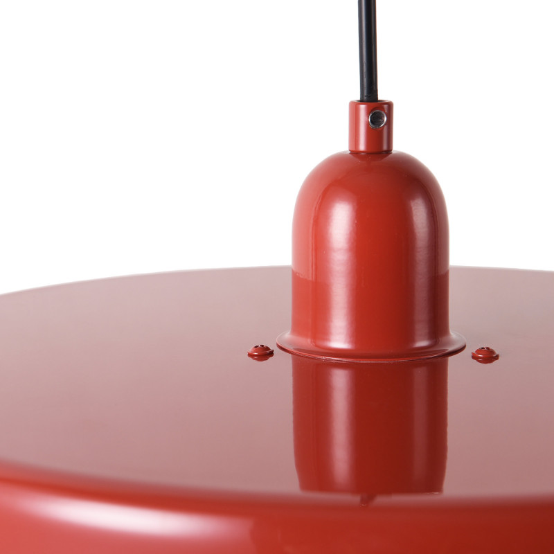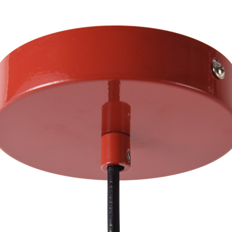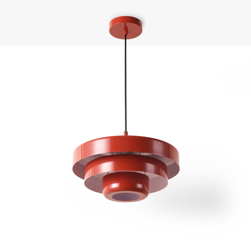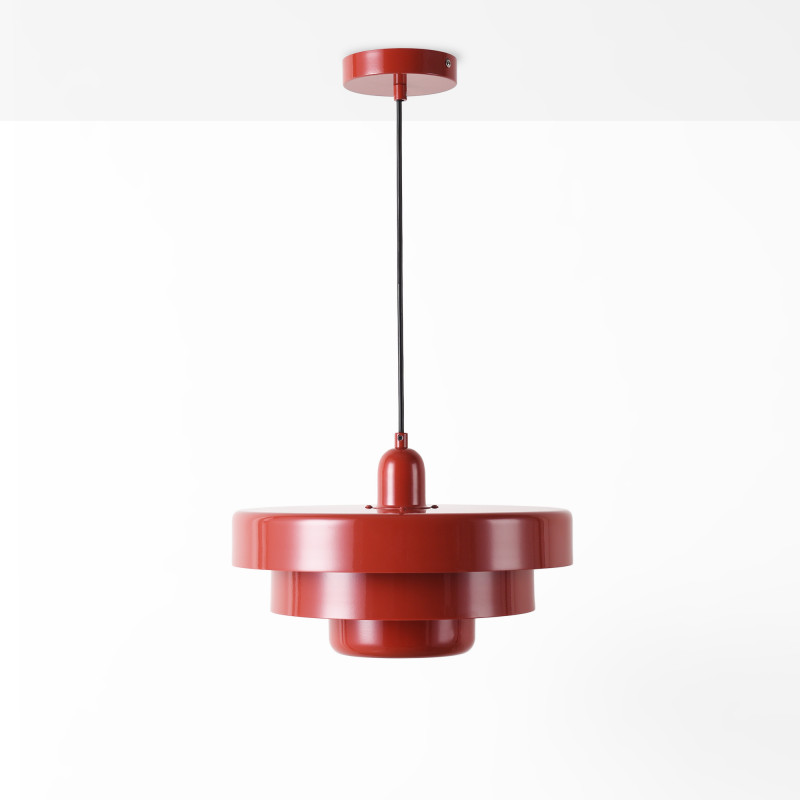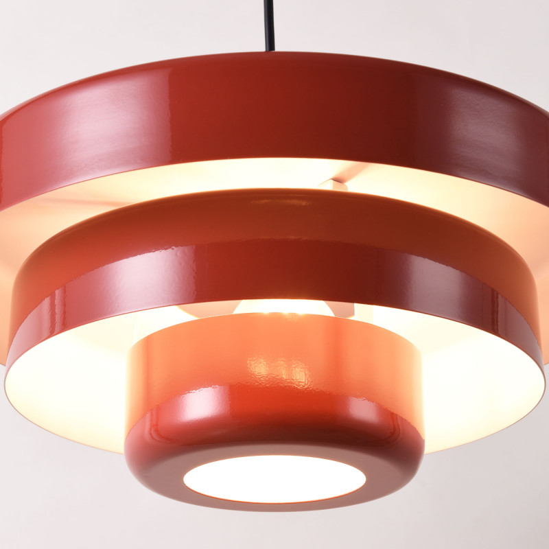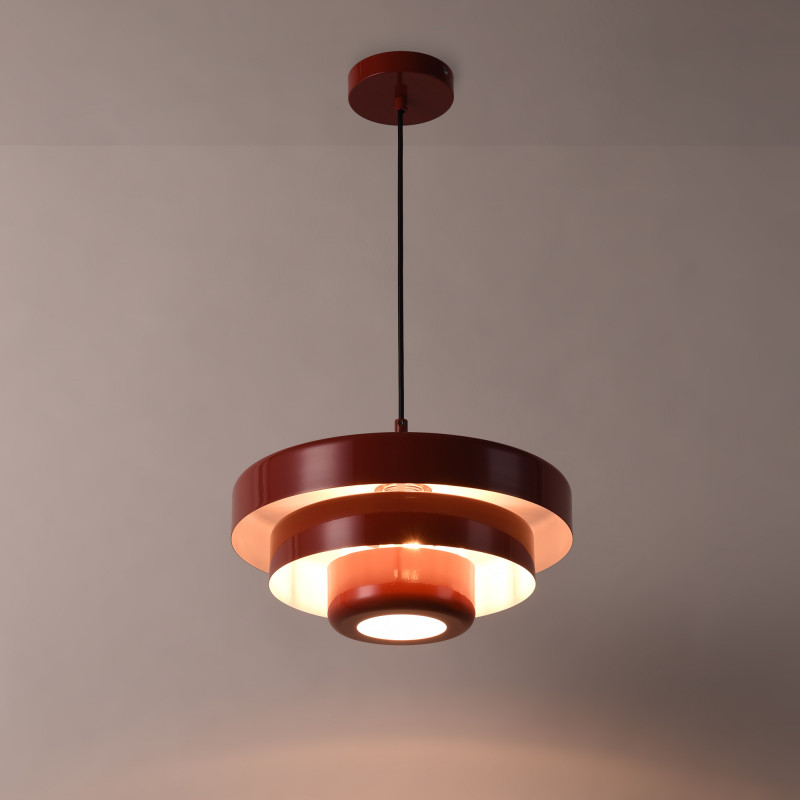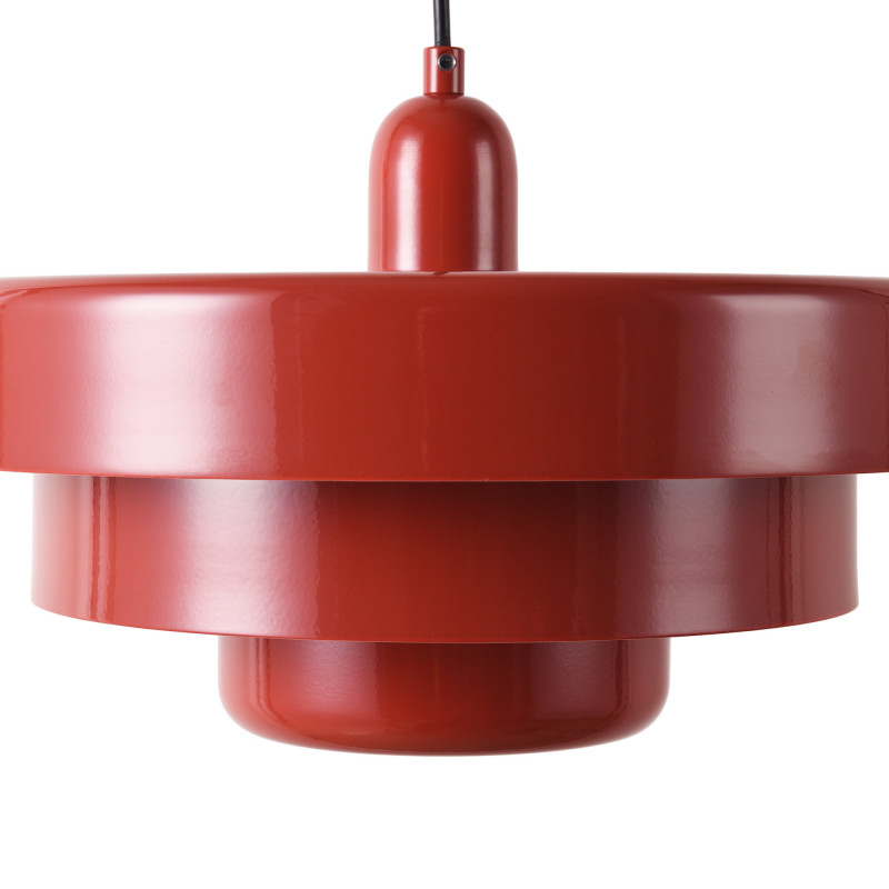 Ta lampa wisząca wyróżnia się charakterystycznym designem, z metalowym kloszem na trzech poziomach, który dodaje głębi oświetleniu.