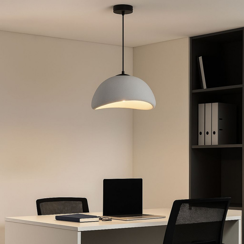 Lampa wisząca wykonana z żywicy z teksturowanym wykończeniem. Jej ręcznie wykonany design i neutralne odcienie wprowadzają spokój i wizualną harmonię do każdego otoczenia.