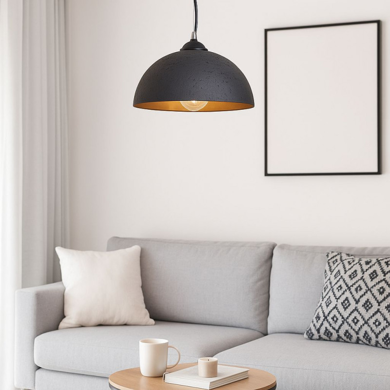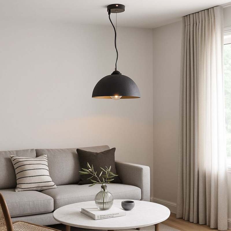 Lampa wisząca wykonana z żywicy o szorstkim wykończeniu. Jej ręcznie wykonany design i neutralne odcienie wprowadzają spokój i wizualną harmonię do każdego otoczenia.