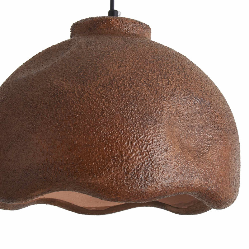 Lampa wisząca wykonana z żywicy o szorstkim wykończeniu i falistych krawędziach. Jej ręcznie wykonany design i neutralne odcienie wprowadzają spokój i wizualną harmonię do każdego otoczenia.