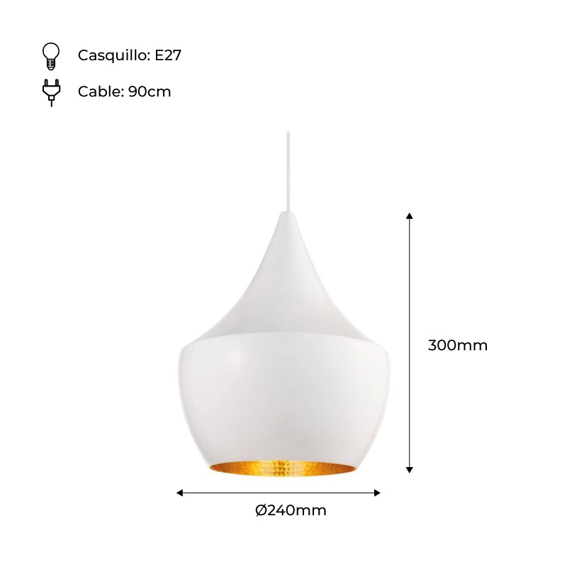 Dostępna w kolorze czarnym i białym, wyróżnia się eleganckim designem z wewnętrznym kloszem w kolorze złotym, który odbija światło w subtelny i ciepły sposób.