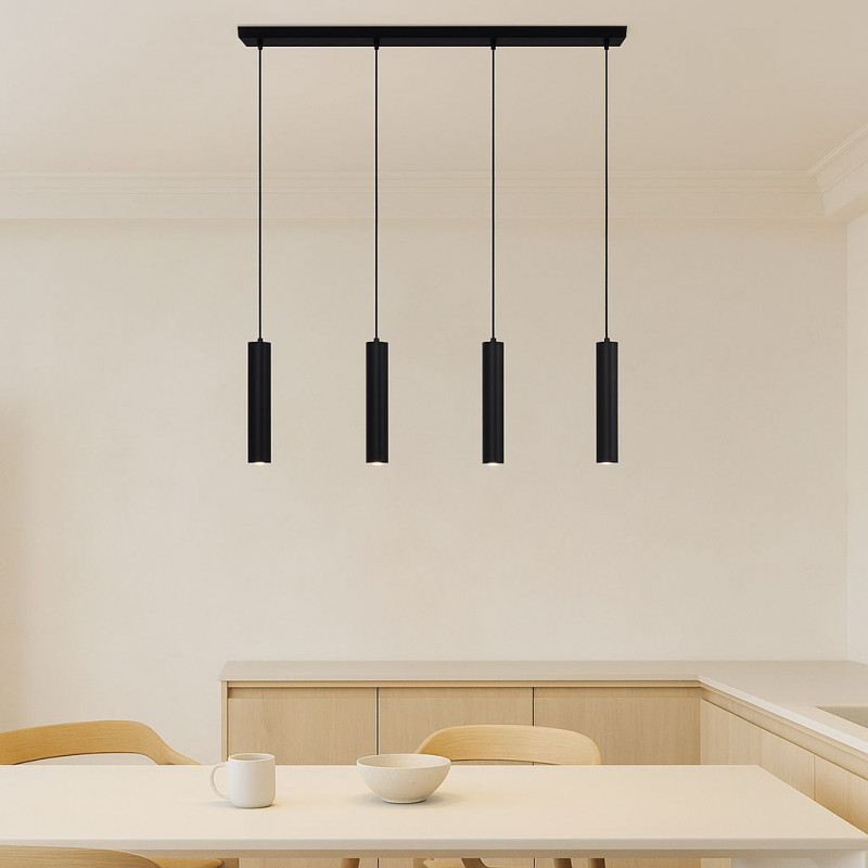 Ta lampa składa się z 4 rurowych reflektorów i ma nowoczesny, minimalistyczny design. Zapewnia doskonałe, skoncentrowane oświetlenie określonych obszarów, takich jak stoły, bary i kuchnie.