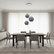 - Łatwa instalacja: Klosze są zawieszone na centralnej rozecie i podtrzymywane przez cienkie, przezroczyste kable o regulowanej wysokości, co ułatwia ich instalację.