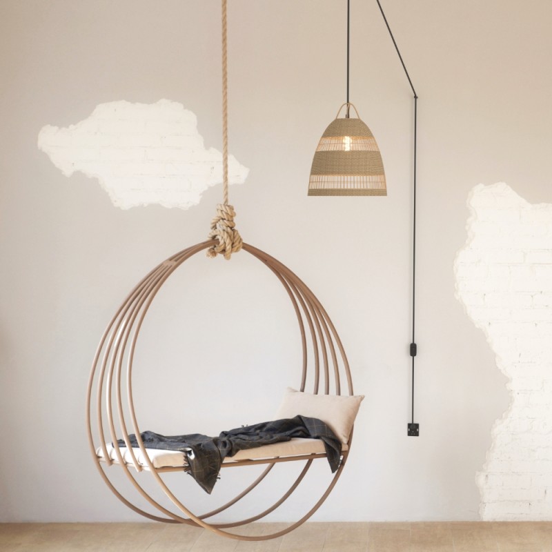 Lampa "Ikken" jest wykonana ręcznie z wikliny, z dbałością o każdy szczegół, aby uzyskać produkt o wysokiej jakości wykończenia. Jego przeplatanie się pozwala stworzyć piękną grę światła i cieni z przejściem światła, dając początek ciepłej i przytulnej atmosferze.