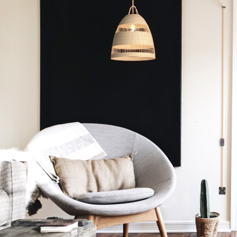 Lámpara colgante de mimbre con interruptor y enchufe "Ikken"