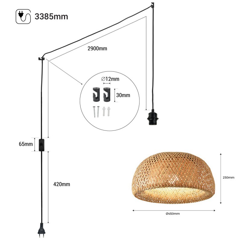 Pasuje do każdej żarówki E27 o mocy do 60 W (brak w zestawie) i jest dostępny w 3 kolorach kabla, w zależności od środowiska, z którym chcesz go połączyć (biały, czarny i naturalny sznur).