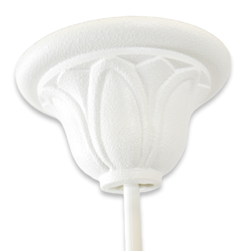 Instalacja jest prosta i obejmuje niezbędne śruby do przymocowania rozety do sufitu.