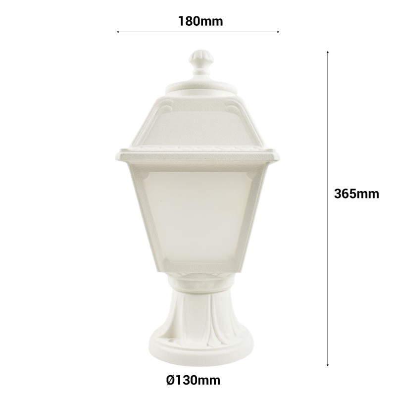 Lampa podłogowa ma klasyczny design i stopień ochrony IP55, dzięki czemu nadaje się do instalacji na zewnątrz i jest odporna na czynniki zewnętrzne, takie jak kurz i wilgoć.