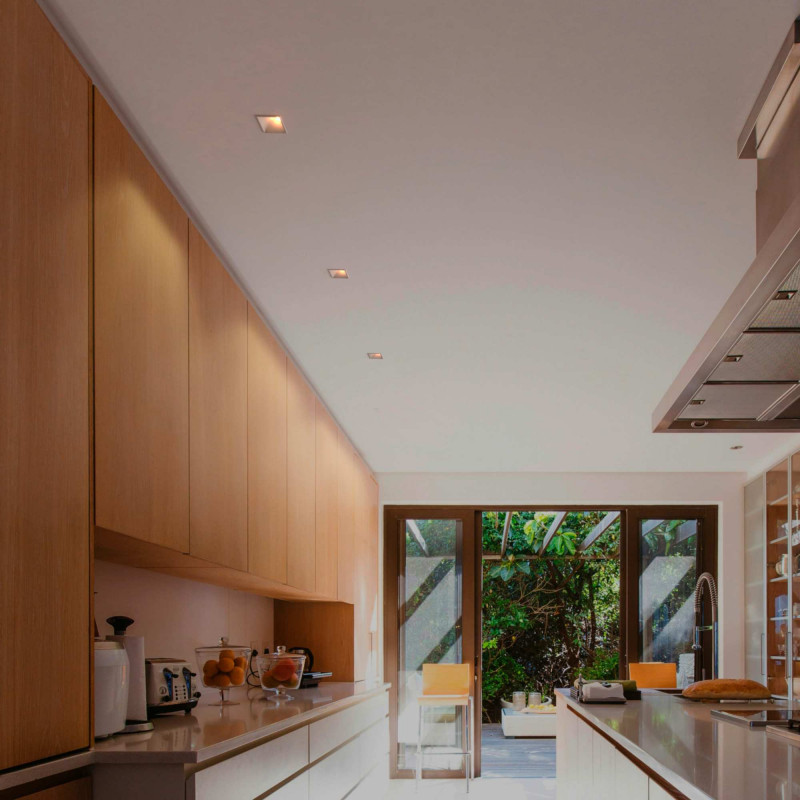Ta pochylona oprawa wpuszczana typu downlight łączy minimalistyczny i elegancki kwadratowy design z zaawansowaną technologią dla tych, którzy szukają nowoczesnego i funkcjonalnego oświetlenia.