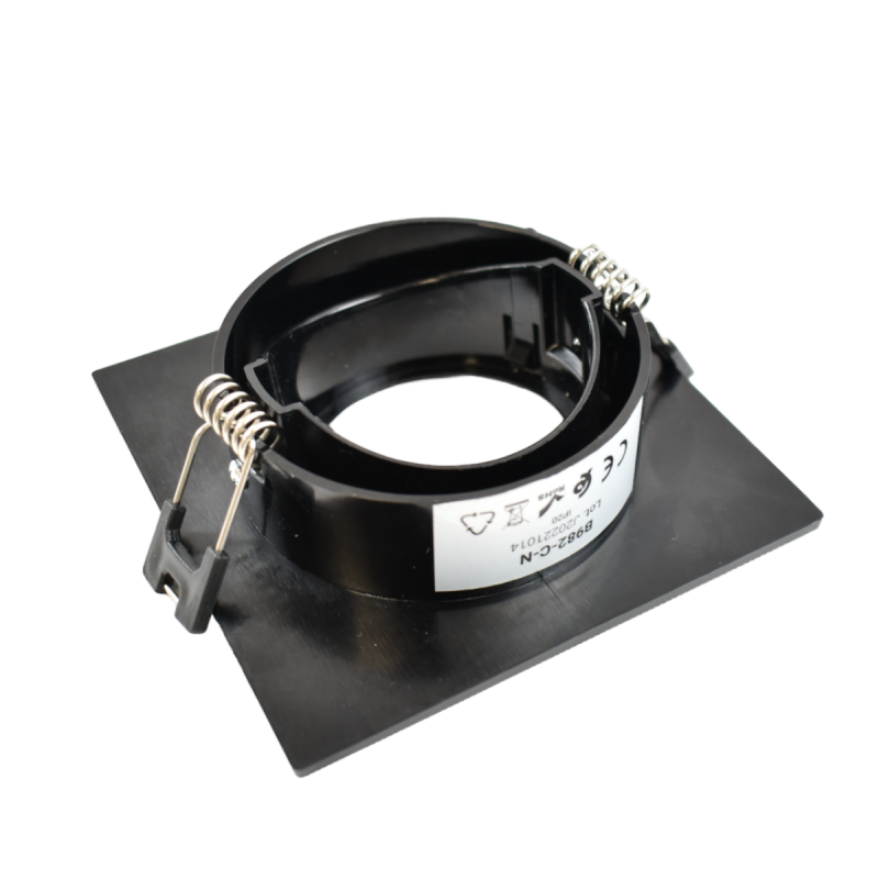 Kwadratowy pierścień wpuszczany z poliwęglanu zaprojektowany specjalnie do montażu żarówek LED GU10/MR16. Posiada odchylany pierścień, który umożliwia skierowanie światła w żądany punkt.