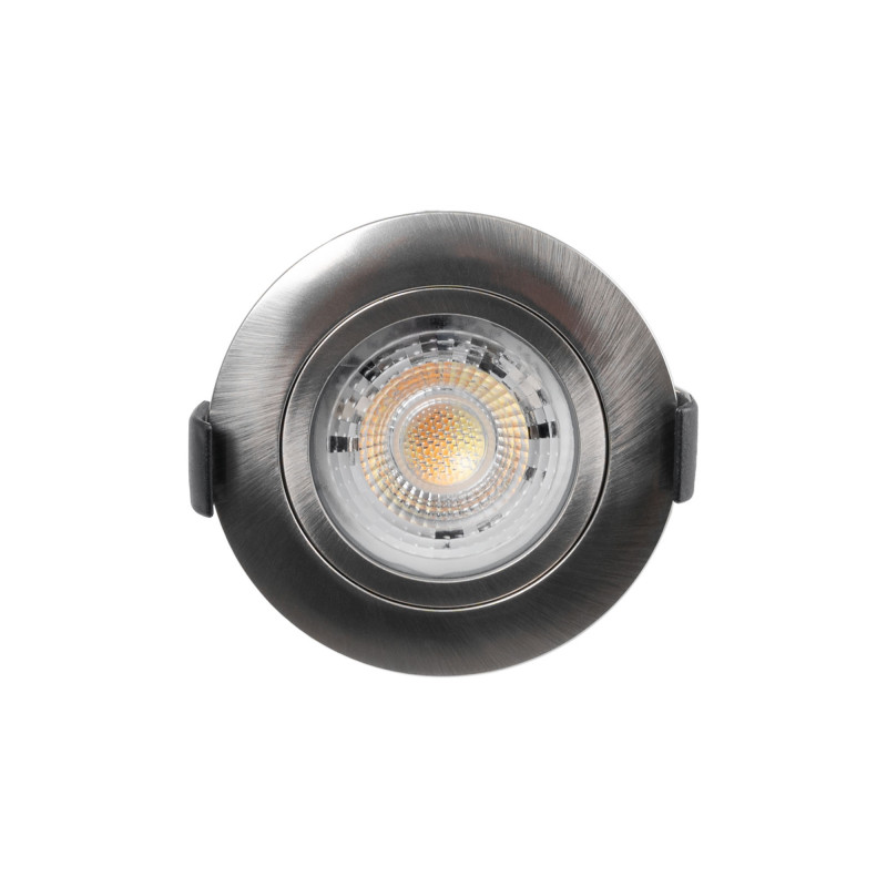 Stały downlight LED o mocy 7 W do użytku zewnętrznego, dostępny w trzech wykończeniach: białym, niklowym i chromowanym.