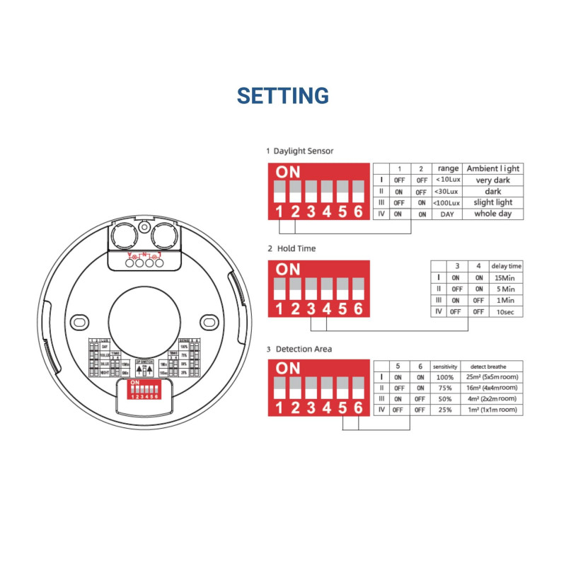 Mikrofalowy czujnik ruchu - Powierzchnia - Przełącznik DIP - Sufit/ściana