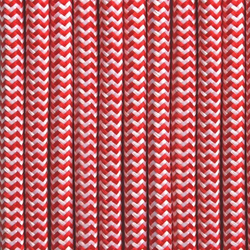 Okrągły kabel elektryczny pokryty tkaniną z efektem jedwabnego zygzaka, czerwono-biały