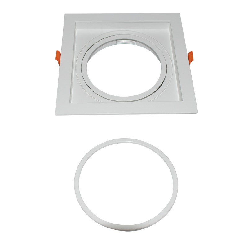Kwadratowy pierścień typu downlight z wałem kardana do żarówek QR111 lub AR111 - Wycięcie 155 x 155 mm