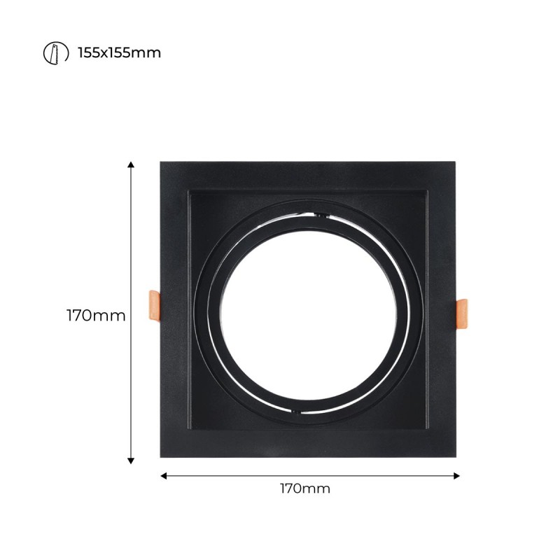 Kwadratowy pierścień typu downlight z wałem kardana do żarówek QR111 lub AR111 - Wycięcie 155 x 155 mm
