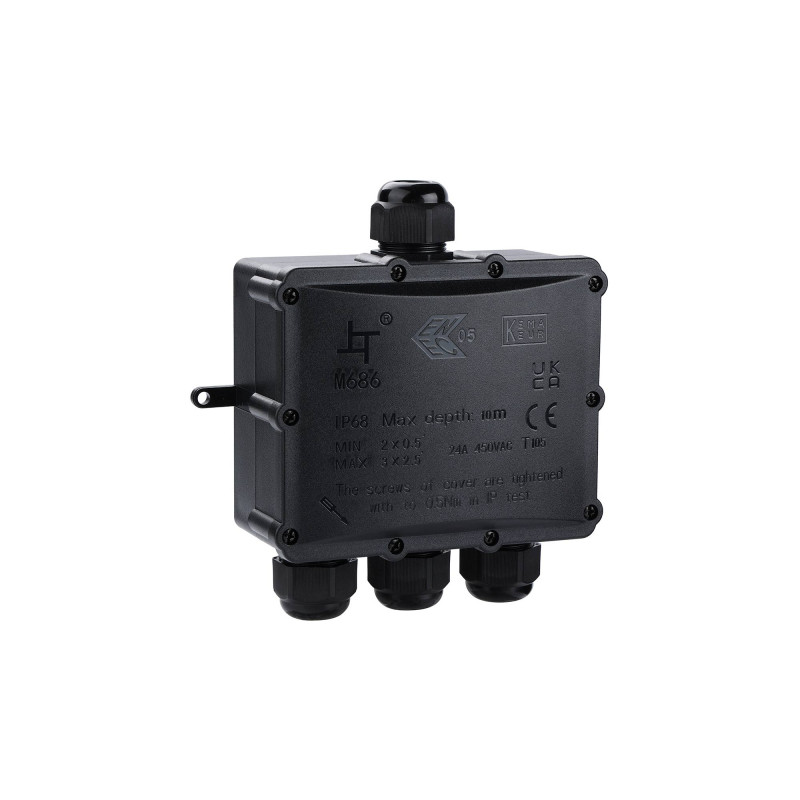 Ta wodoodporna skrzynka przyłączeniowa została zaprojektowana w celu zapewnienia bezpiecznego łączenia w wymagających środowiskach. Idealna do użytku na zewnątrz, jest zanurzalna i odporna na kurz i wilgoć.