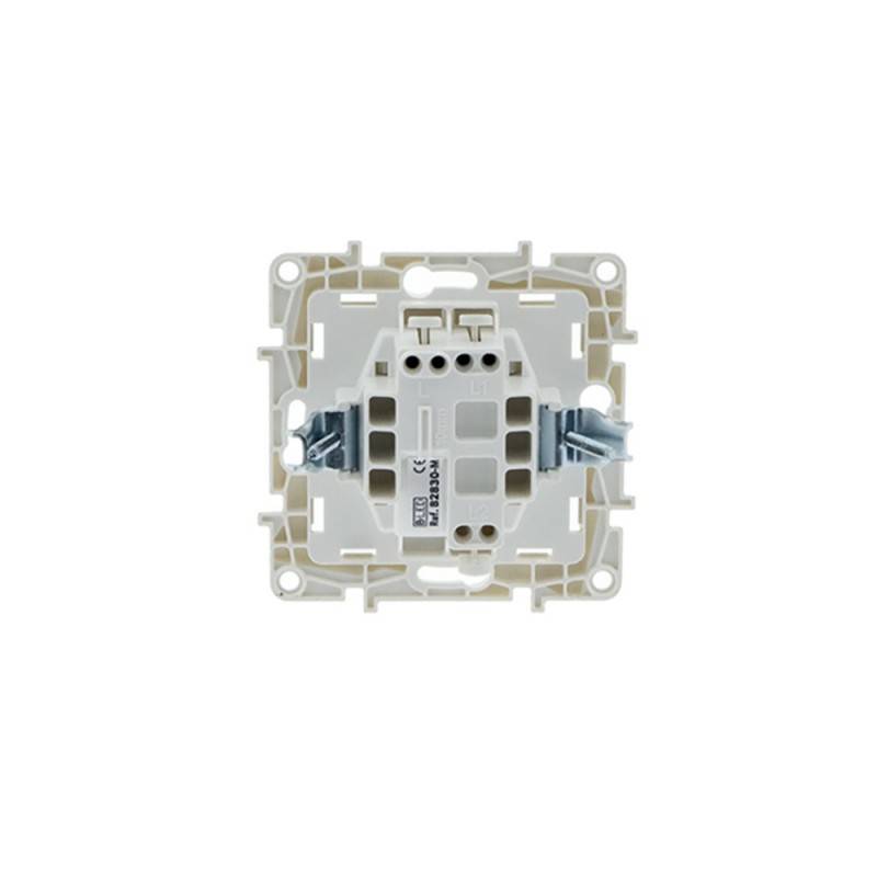 Podtynkowy mechanizm elektryczny z funkcją przełącznika składający się z pojedynczego elementu 1-drożnego. Konstrukcja i wymiary do zabudowy w puszce uniwersalnej. System mocowania okablowania za pomocą bezśrubowych zacisków szybkozłącznych.