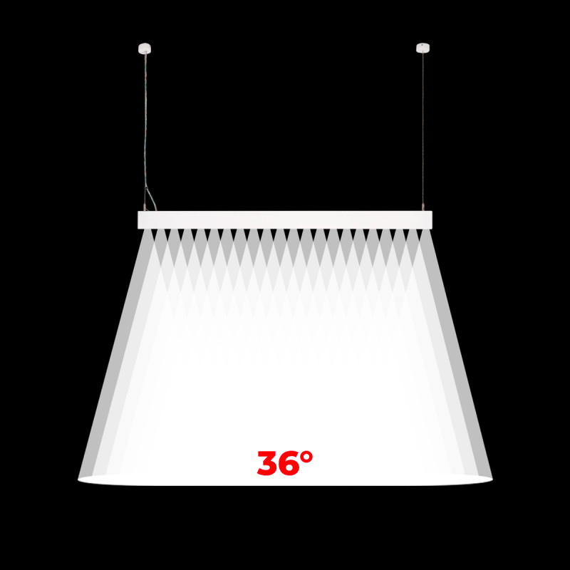 - Optyka o niskim współczynniku olśnienia UGR<17: Kąt przysłony 36° precyzyjnie kieruje światło i ogranicza olśnienie.