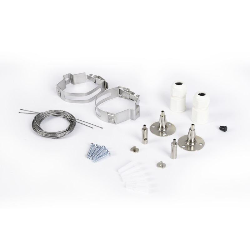 - Łatwa instalacja: Możliwość montażu natynkowego lub podwieszanego, z dołączonym zestawem montażowym ze stali nierdzewnej (2 kable ze stali nierdzewnej o długości 2 m każdy).