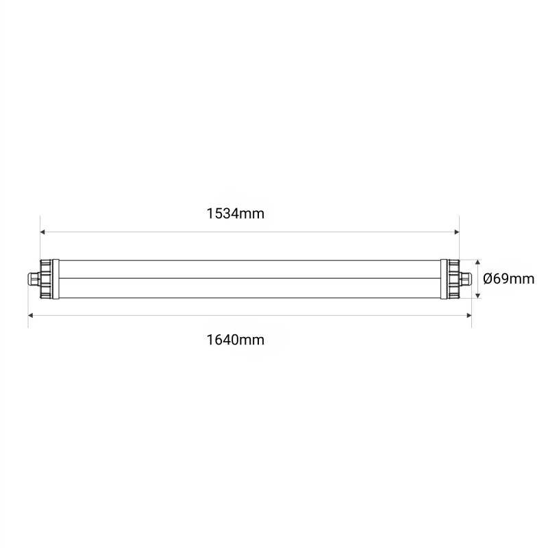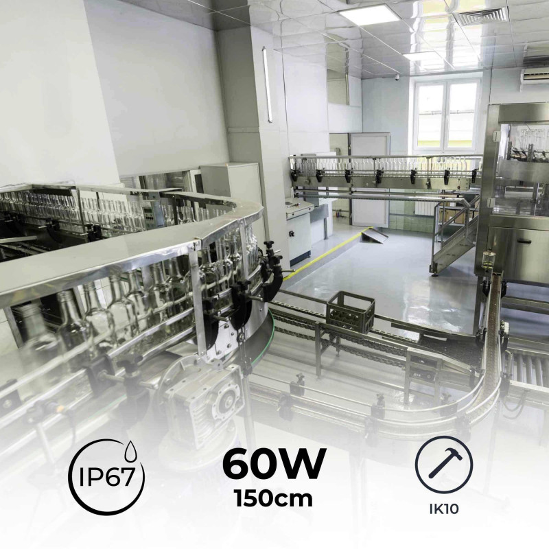 Luminaria estanca tubular para uso industrial - 150cm - 60W - 6900lm - IP67 - IK10