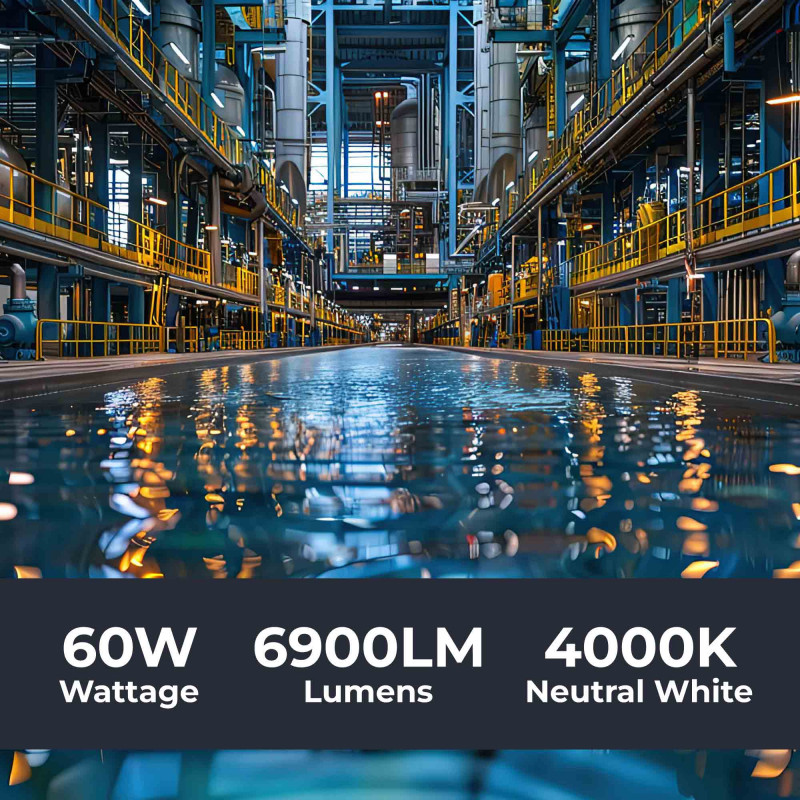 - Wysoka moc i wydajność: Dzięki mocy 60 W oferuje jasność 6900 lumenów, idealną do oświetlania dużych obszarów.