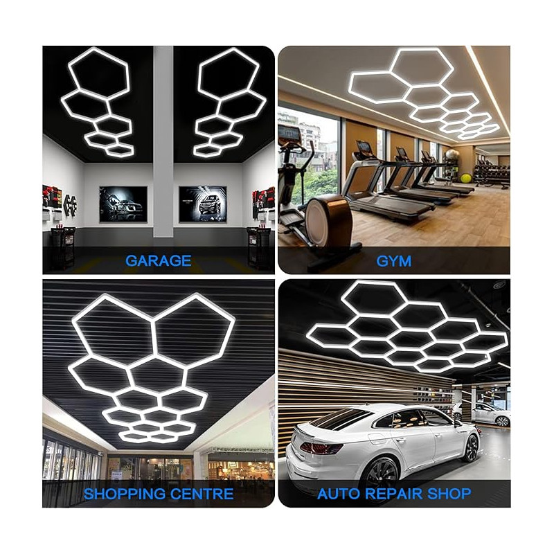- Modułowa konstrukcja: Każda oprawa oświetleniowa idealnie pasuje do innych, tworząc sześciokątne struktury lub niestandardowe kompozycje, ułatwiając tworzenie unikalnych, nowoczesnych i efektownych wizualnie projektów.