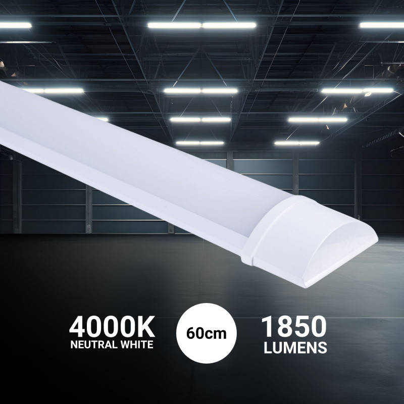 Liniowa oprawa LED o długości 60 cm i mocy 18 W, idealna do zastąpienia świetlówek.