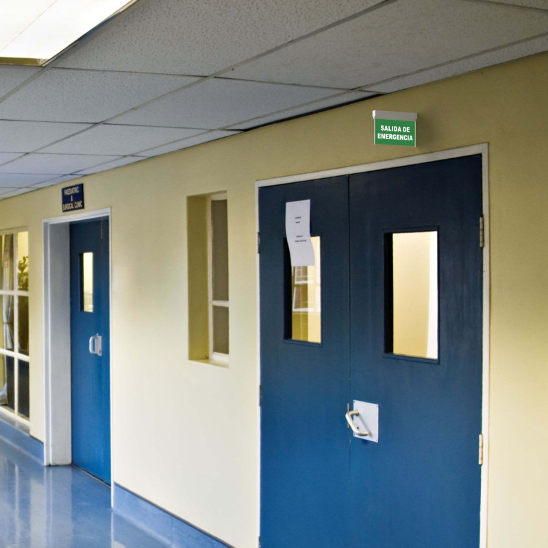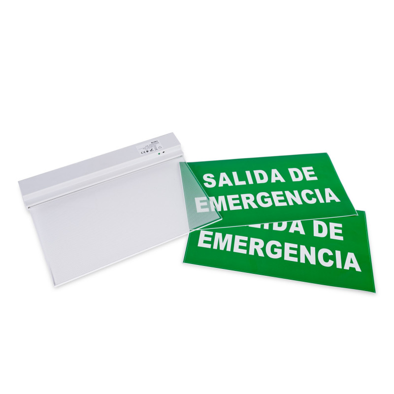 Zawiera dwa samoprzylepne znaki, które można łatwo przymocować do przezroczystego panelu i zapewniają wyraźne oznakowanie lokalizacji wyjścia awaryjnego. Dwa identyczne znaki, po jednym z każdej strony panelu, zapewniają maksymalną widoczność.