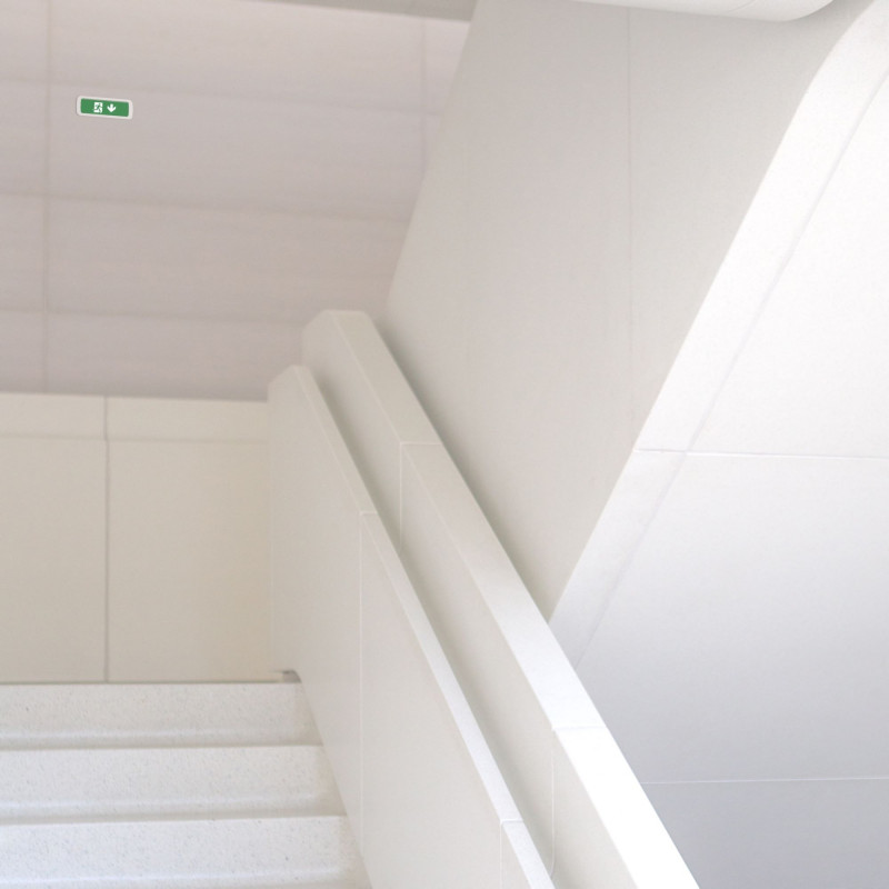 Zawiera samoprzylepny znak, który można łatwo przymocować do oprawy i umożliwia sygnalizowanie lokalizacji wyjścia w krytycznych momentach.