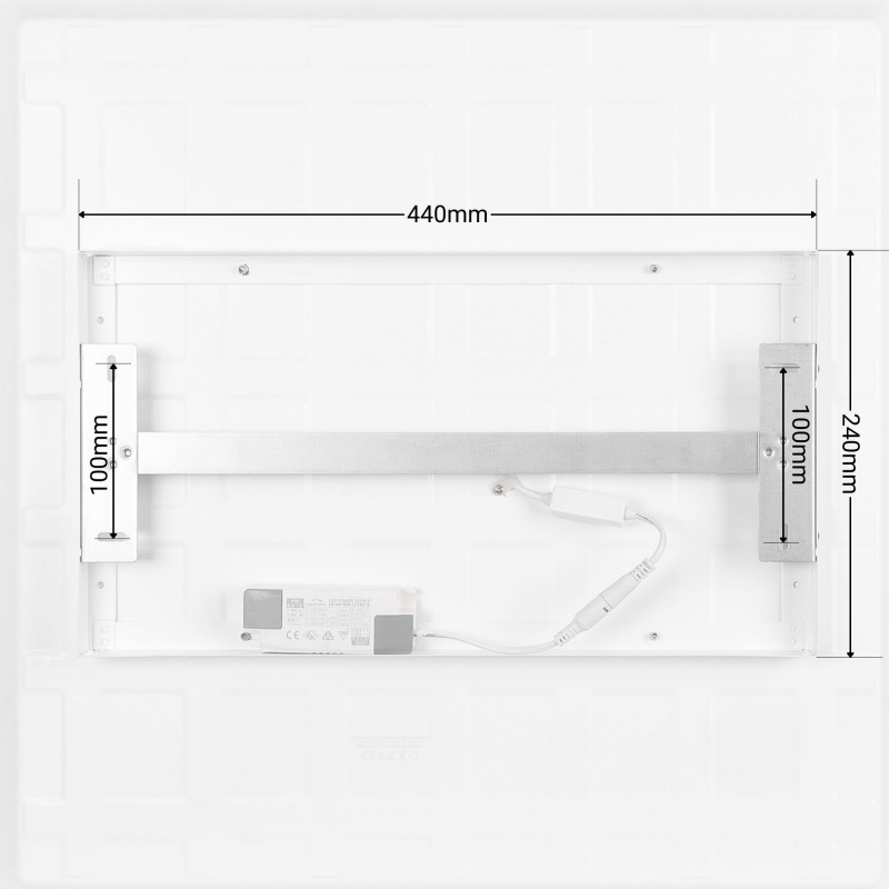 - Regulowany odcień: system CCT do regulacji temperatury barwowej pomiędzy: ciepłą bielą (3000K), neutralną bielą (4000K) i chłodną bielą (6500K). Sterowanie odbywa się za pomocą przełącznika wbudowanego w panel.