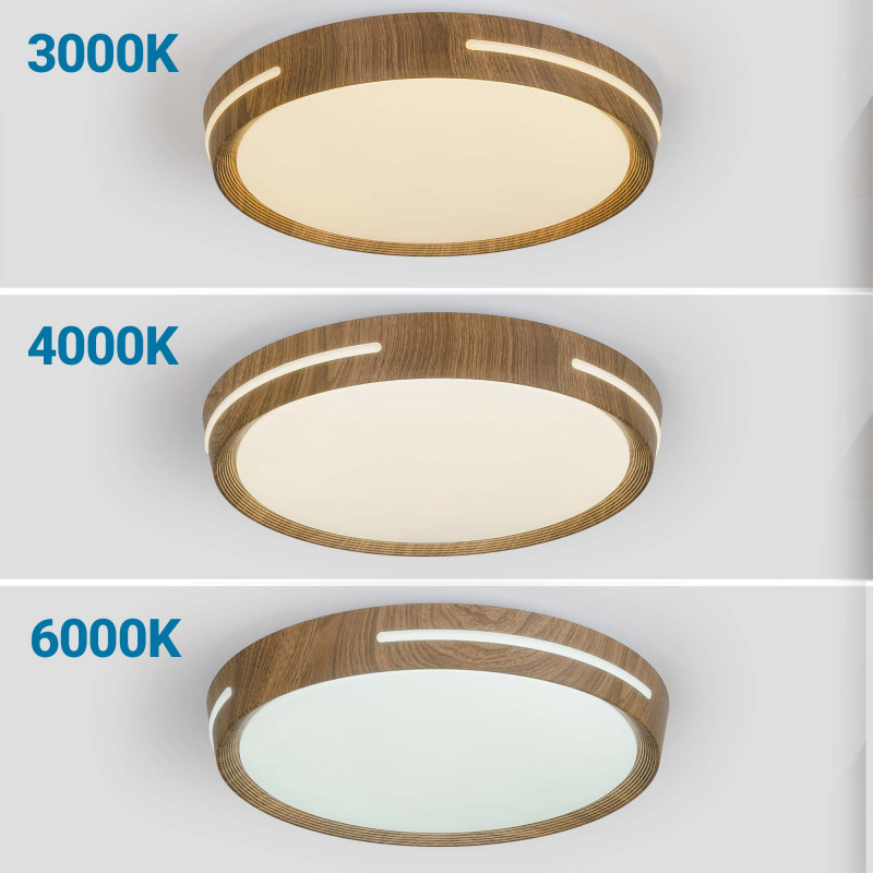 Panel sufitowy LED CCT - 24W - Efekt boczny - Kolor drewna Ø40cm