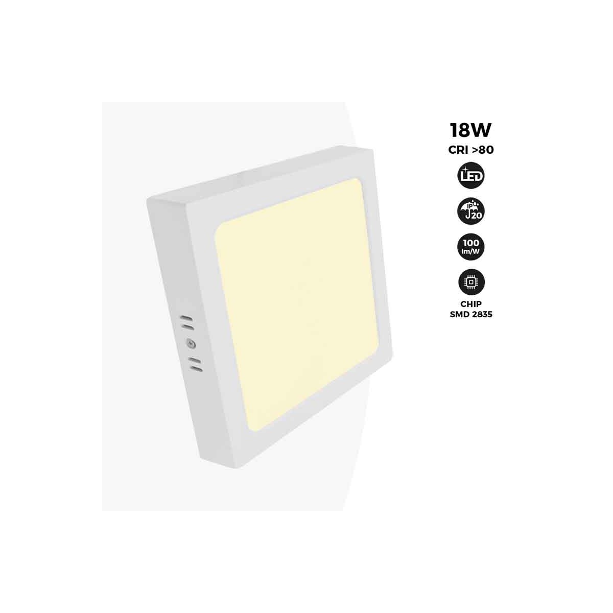 Lampa sufitowa LED o mocy 18W i wysokiej skuteczności świetlnej 100lm/W, o całkowitym natężeniu światła 1800 lumenów. Natynkowa lampa sufitowa LED doskonale nadaje się do stosowania jako oświetlenie ogólne w kuchniach, salonach, sypialniach, biurach, restauracjach i wszelkich pomieszczeniach wewnętrznych, ze stopniem ochrony IP20.