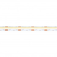 Ta taśma LED wykorzystuje technologię COB, która pozwala jej emitować ciągłe światło, bez widocznych punktów, szczególnie zalecane, gdy pożądane jest jednorodne oświetlenie, do pracy z powierzchniami odbijającymi światło lub do stosowania przezroczystych dyfuzorów.