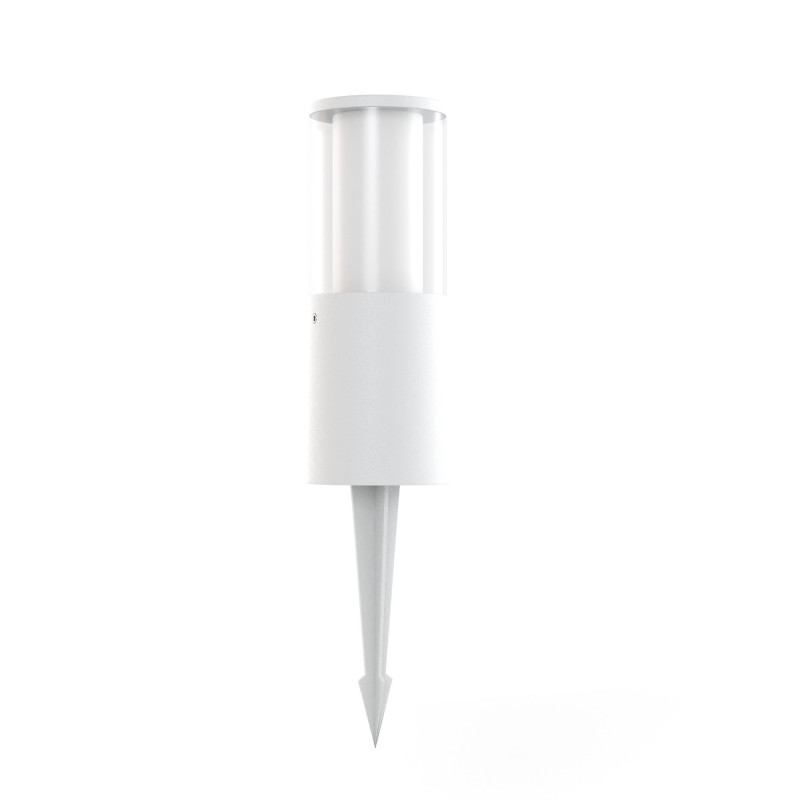 Słupek LED z kolcem i rurową konstrukcją, wykonany z żywicy odpornej na wstrząsy, korozję i promieniowanie UV. Montuje się go poprzez wbicie w ziemię, trawę lub piasek.