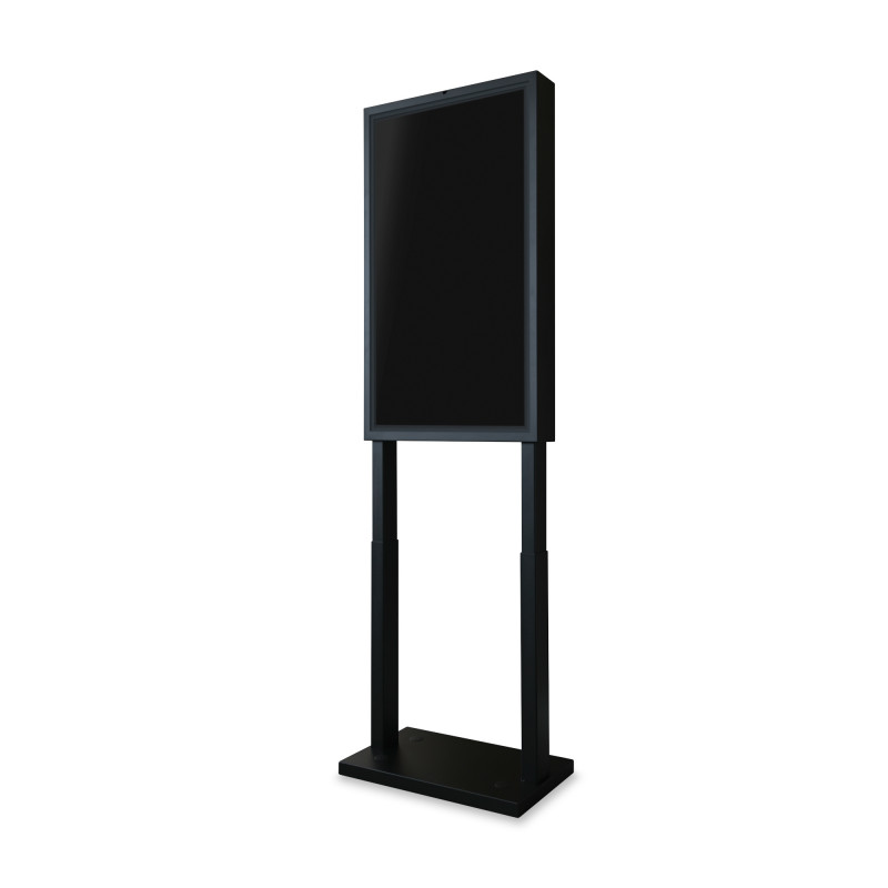 To innowacyjne urządzenie reklamowe ma elegancki wygląd. Jego konstrukcja obejmuje metalową ramę, w której znajduje się 43-calowy ekran LCD.