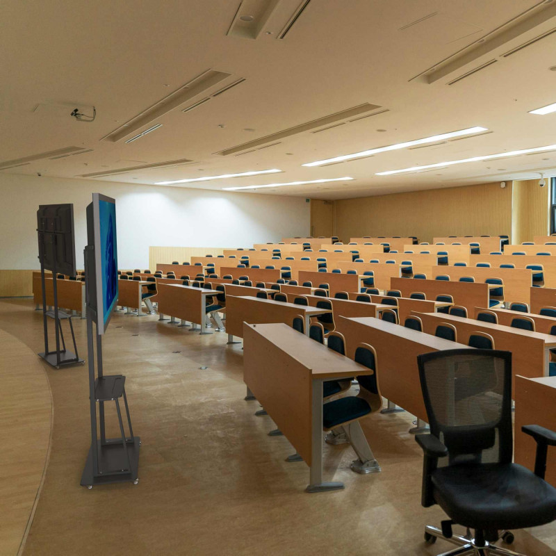 - Wszechstronna instalacja: W zestawie mobilna podstawa z kółkami, którą można również zamontować na ścianie.