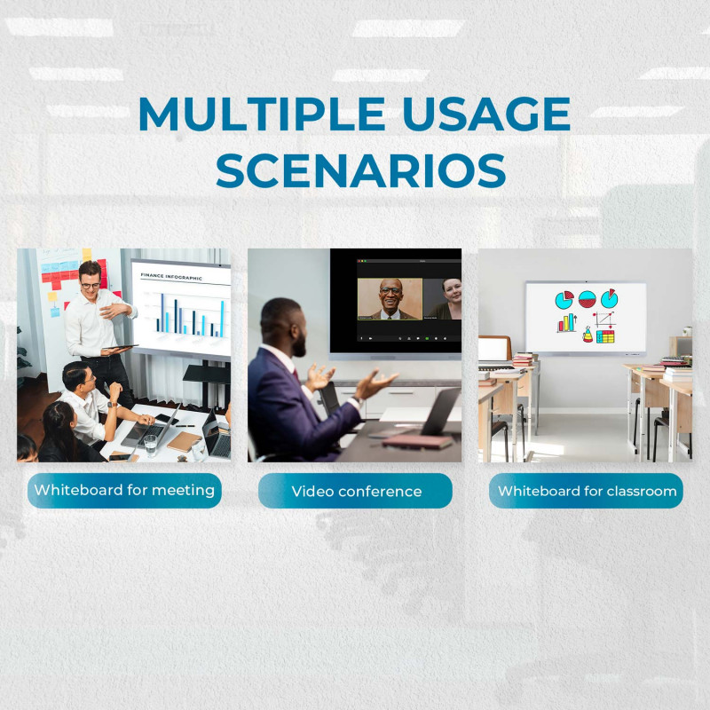Przekształć swoje sale lekcyjne i spotkania dzięki najnowszej technologii interaktywnych wyświetlaczy. Ten cyfrowy wyświetlacz oferuje doskonałe wrażenia wizualne i dotykowe, wyposażony w kamerę o wysokiej rozdzielczości i zintegrowany mikrofon, aby zapewnić wyraźną i skuteczną komunikację.