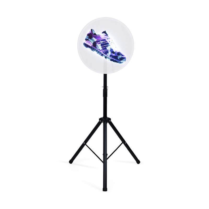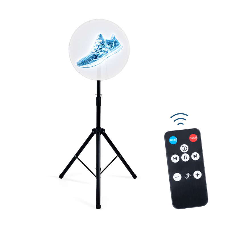 Wentylator holograficzny 3D posiada cztery łopatki z paskami świetlnymi LED, które obracają się z dużą prędkością i generują sekwencję obrazów. Dzięki zjawisku znanemu jako "persistence of vision" (POV), obrazy te są postrzegane jako pojedynczy pływający obraz 3D lub hologram.