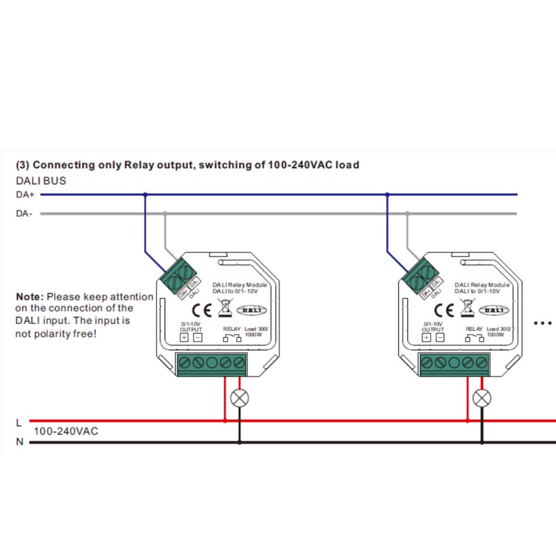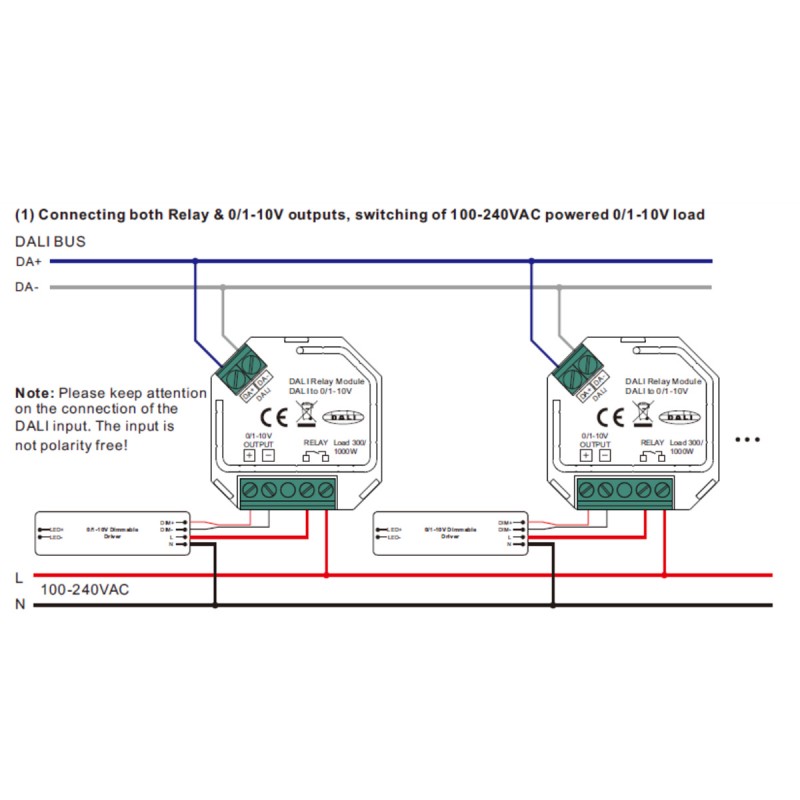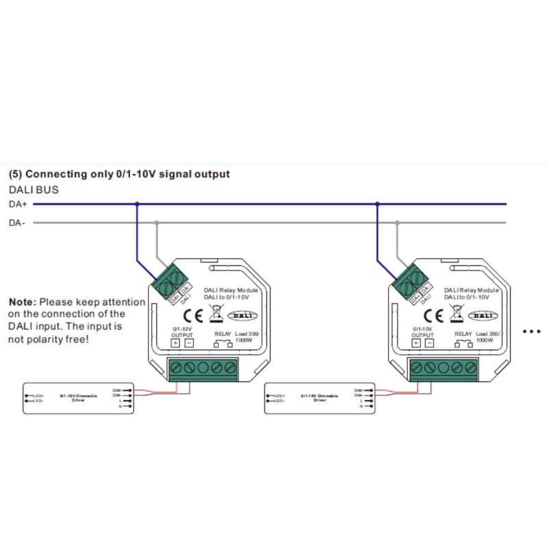 Konwerter Sunricher 2 w 1 to urządzenie, które działa jako przekaźnik DALI i jako konwerter DALI 0/1-10 V, zdolny do przełączania obciążeń AC i DC. Umożliwia włączanie/wyłączanie i sterowanie źródłami światła 0/1-10 V, które nie są kompatybilne z DALI.