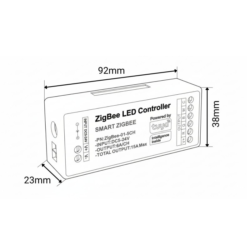 Zaprojektowany do zarządzania taśmami LED w systemach automatyki. Jego kompatybilność z Zigbee i platformą TUYA SMART pozwala na łatwą integrację z nowoczesnymi rozwiązaniami automatyki domowej, zapewniając zdalne sterowanie, wydajność i elastyczność.