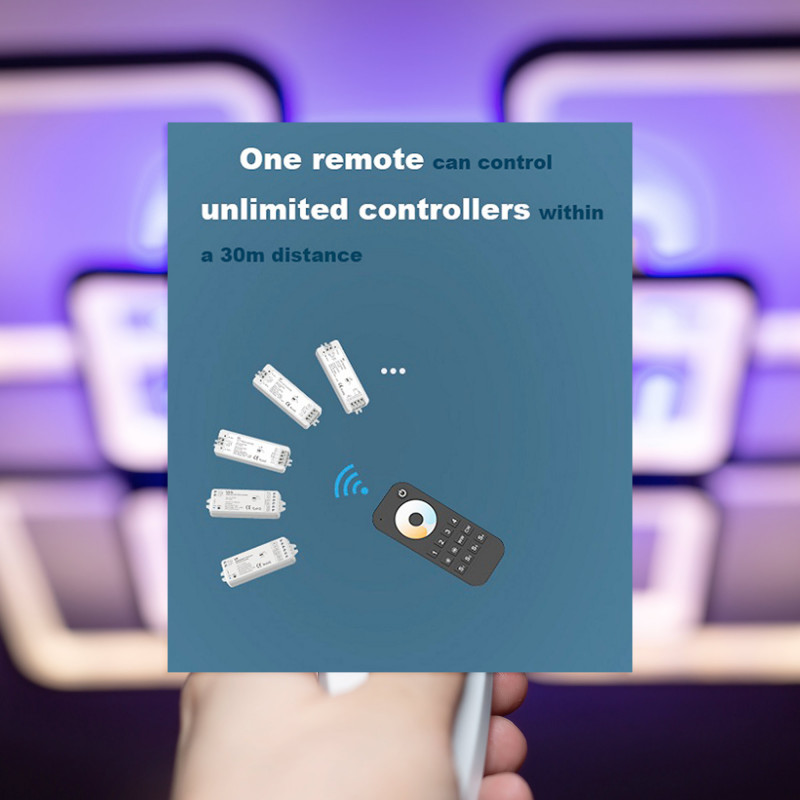 Pilot zdalnego sterowania Skydance LED RGB / RGBW 1 oferuje pełną i łatwą kontrolę nad oświetleniem. Niezawodna transmisja do 30 metrów, nawet przez ściany i sufity.