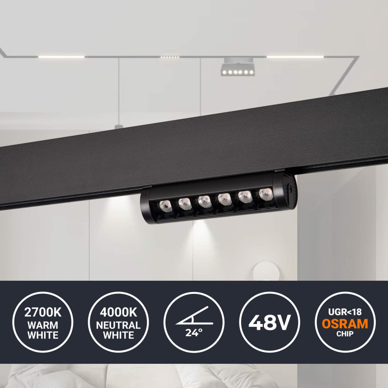 Orientowalna linia świetlna na szynie magnetycznej 48V - 6W - Chip OSRAM - UGR18 - CRI90