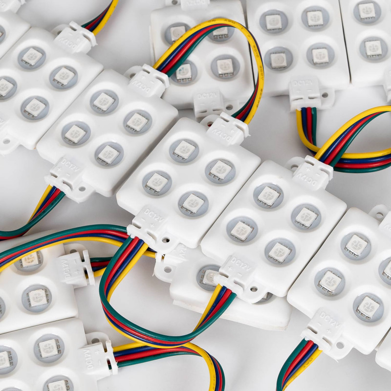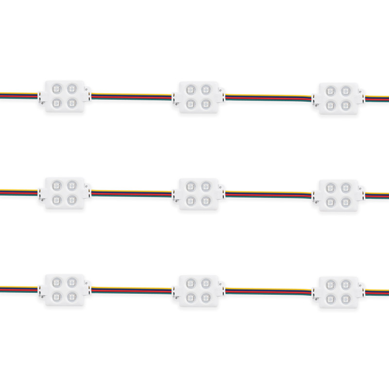 - Wysoka moc: Każdy moduł ma 4 zintegrowane chipy LED SMD 5050, każdy o mocy 0,96 W, zapewniające jasne i równomierne oświetlenie.