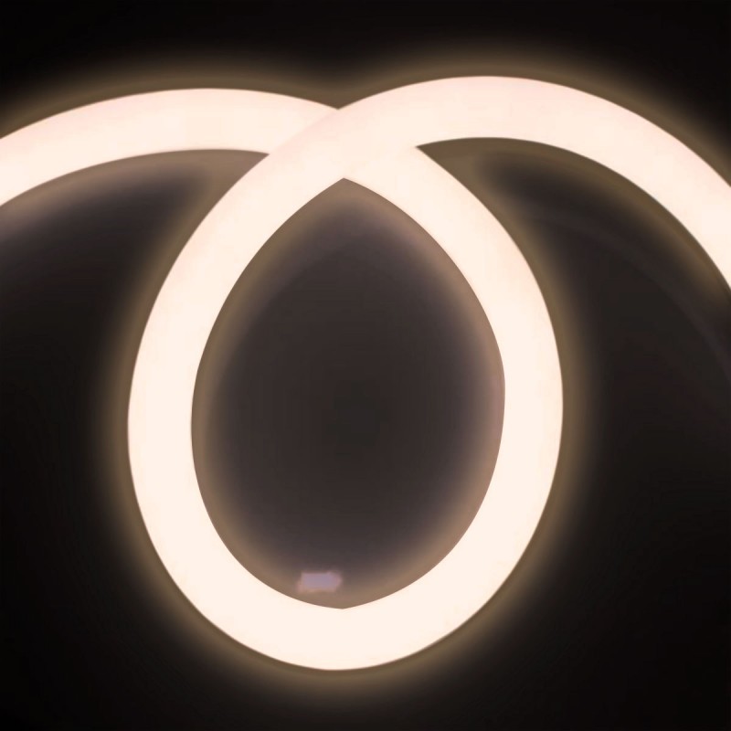 Elastyczny neon LED posiada silikonową osłonę z opalowym wykończeniem, która rozprasza światło w podobny sposób jak stare neony.