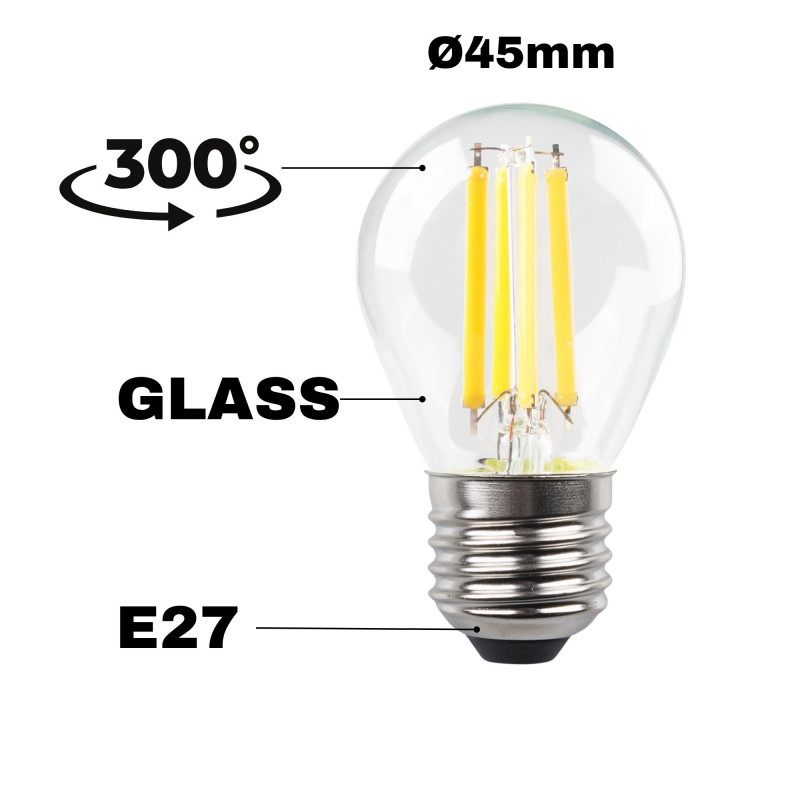 Żarówka LED G45 z kulistym żarnikiem E27 oferuje styl retro z nowoczesną technologią. Idealna do ciepłego, energooszczędnego oświetlenia.
