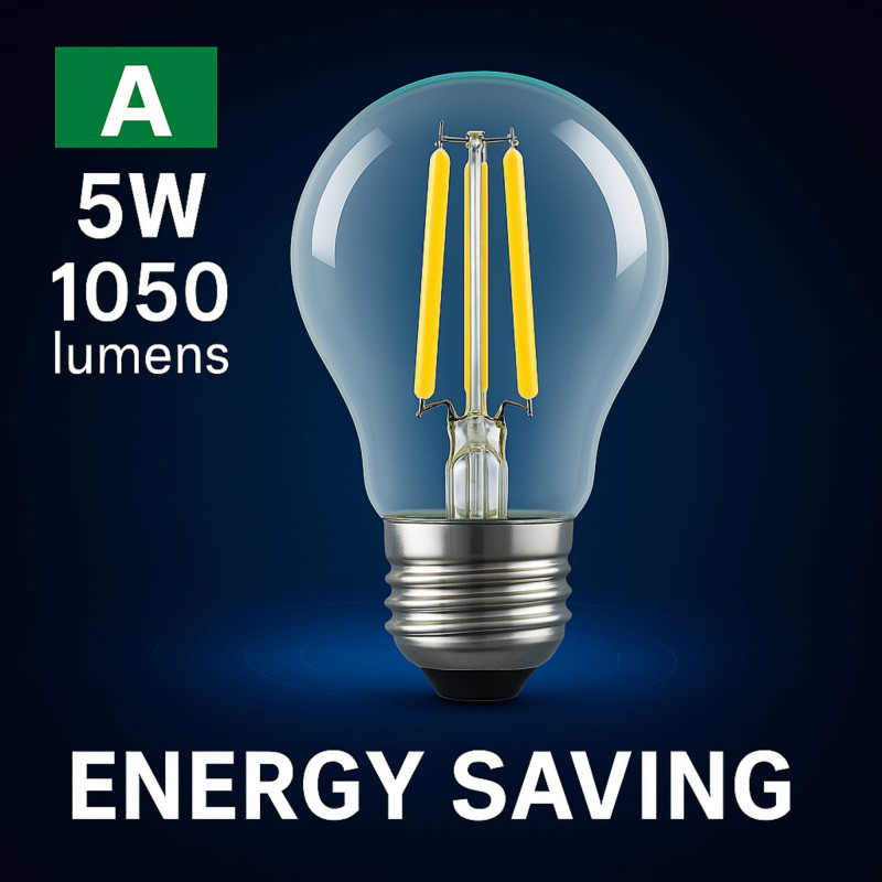 Żarówka LED z włóknem E27 A60 - 5W - Przezroczysta
