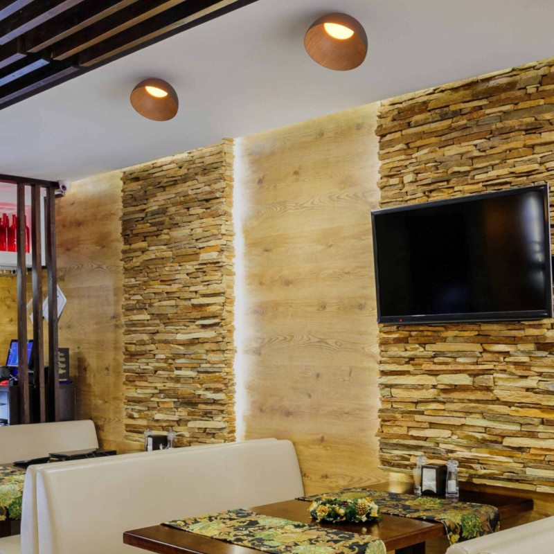 Estilo versátil que se adapta a cualquier ambiente, resaltando contrastes de forma armoniosa, gracias a su estructura metálica, su interior en efecto madera y un difusor en policarbonato para una iluminación uniforme y eficiente.