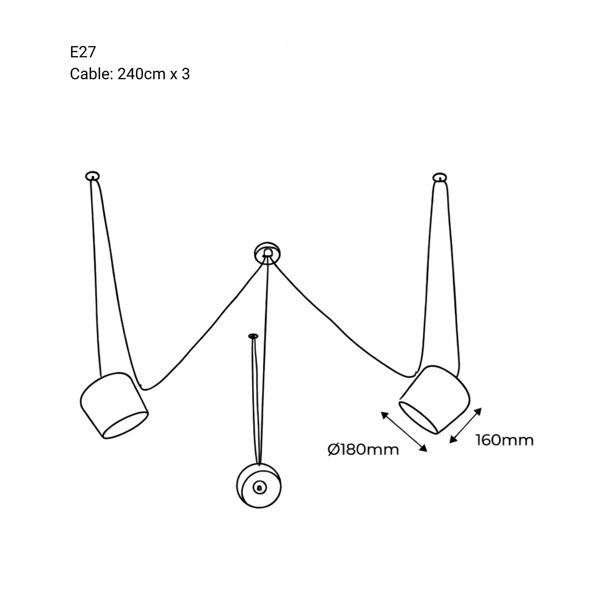 Admite 3 bombillas LED E27 (no incluidas) con una potencia máxima de 40W cada una.