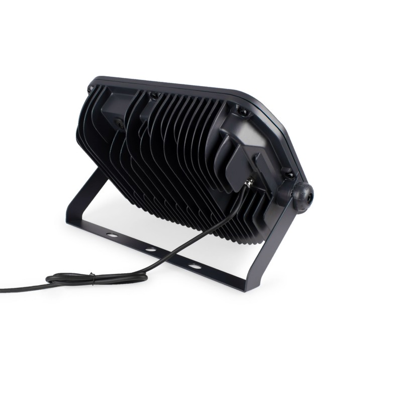 El proyector LED asimétrico de 200W ofrece resultados óptimos tanto lumínicos como de estanqueidad, ya que su alto grado de protección IP (IP65) le otorga una gran resistencia a factores externos tales como la lluvia y el polvo. Está fabricado en aluminio fundido a presión de color gris que asegura una larga vida útil.
