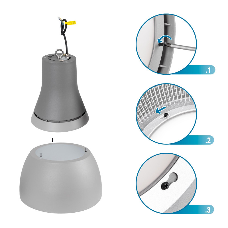 CCT High Bay Light LED Comercial de Alto Desempenho - Difusor em Alumínio